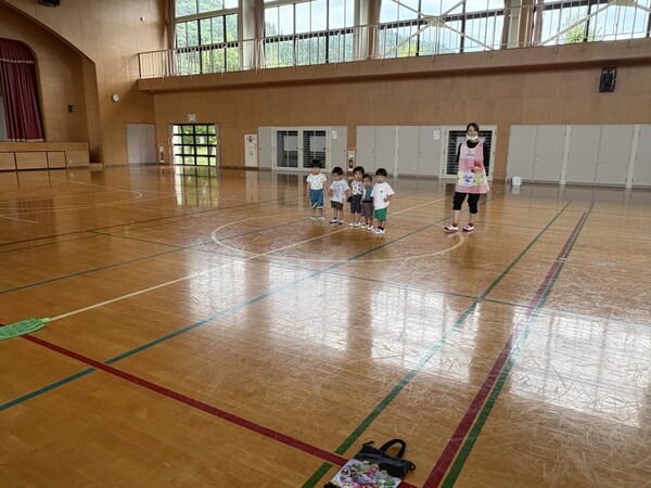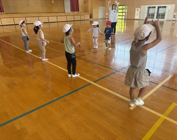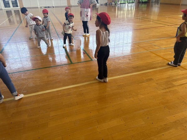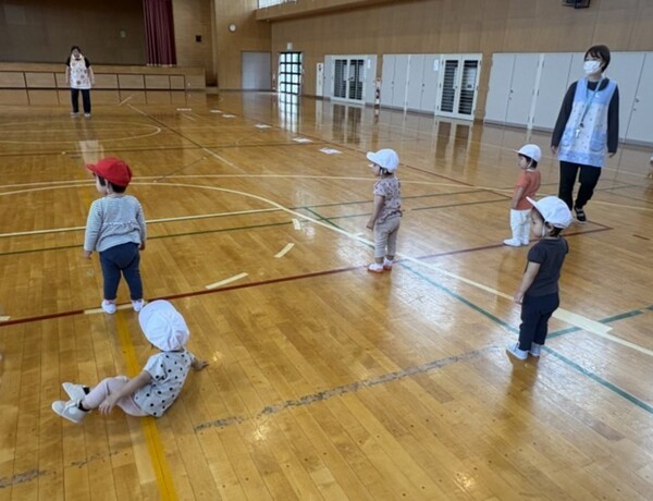 練習初日は以上児さんといちご組がふれあいセンターへ行き