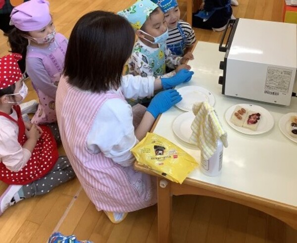 オーブントースターで目の前で焼く様子も見学し、「チーン🎵」という夢の音色を奏でて完成✨