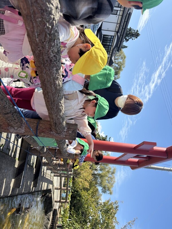 遊具で遊んだり、鯉とカモに餌をあげたり、噴水の近くまで行ったりと、終始大興奮の子ども達でした〜