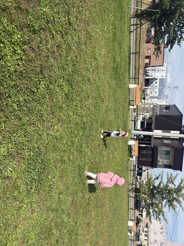 野球場をぐるっと1周して、シートを敷いて朝のお菓子タイム⇒からの走ってエンジョイ🎵のと〜っても楽しい時間を過ごしました🤗
