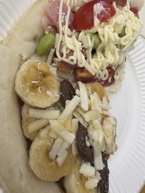 たくさんのトッピングを前に悩みながらも、楽しんでクッキングができていました😆