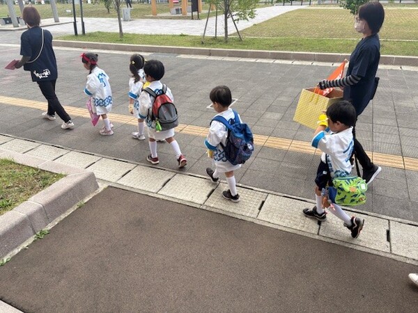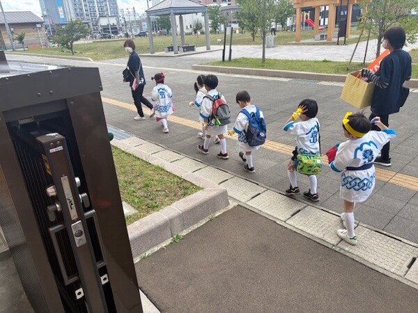 小さいクラスの園児も、お手製の新聞紙棒でぺちっぺちっとダメージを与えてくれて、