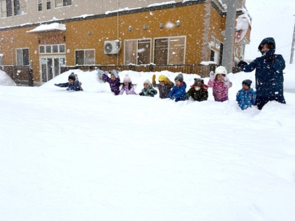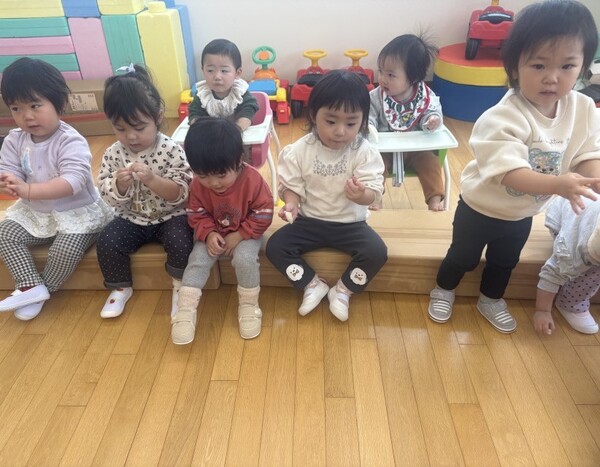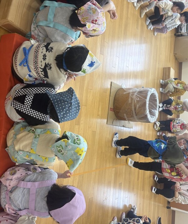 12/1(月)に年長〜1歳児さんがゆうぎ室に集合し、【春雨あそび】をしました😊♥️